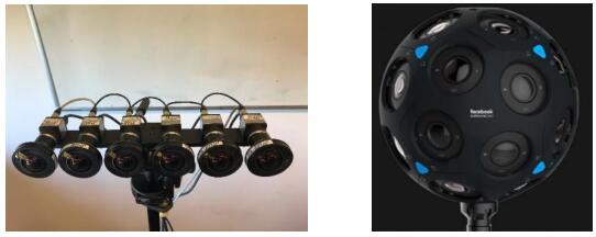 相机往往基于固定的角度间隔摆放,角度间隔越小,视角切换的平滑度会越高,但同时相机的数量和系统成本也会随之增加,所以如何利用尽可能少的相机拍摄出平滑度高的 6DoF VR 视频是前端采集的关键任务。除此之外,采集系统的同步性和标定精度也是影响拍摄质量的两个主要指标,为了拍摄出接近静止的多角度精彩瞬间,要求相机支持毫秒级别的同步触发拍摄。直播图像要围绕一个焦点旋转,支持焦点的数量和可选范围的大小也是衡量一个拍摄系统的关键所在。