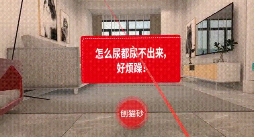 点击“刨猫砂”按钮,模拟刨猫砂动作,看到满地的猫砂;