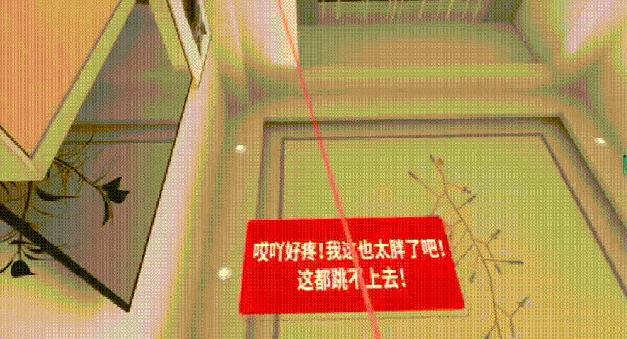 点击“向前”按钮,移动到桌子前,点击“准备“ 按钮,进行跳跃互动,互动玩法:按住控制器<扳机键>拖拽箭头方向,确认后释放;