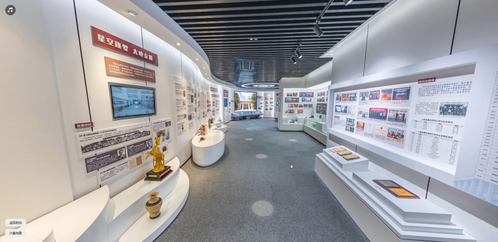 华东理工建设成就展,采用全景拍摄结合步进式程序的方式。技术革新是在三维小地图中增设步进式全景点位,让使用者能更自由便捷的选择位置;场景和小地图可随时切换、其他功能包括:热点链接图片、音频、视频等介绍,音频还有调速、下载、静音等小功能。真实还原实地场景及展品,一个链接就能把展厅传送给其他人,程序还可结合VR视频、livepano、虚拟人等系列技术。