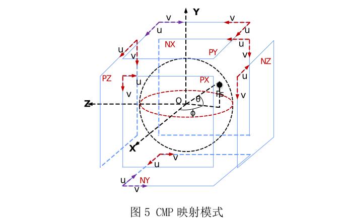 CMP 映射模型有 6 个映射面,分别将 360°球体视频图像映射到 6 个面上,如图所示。