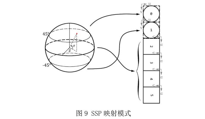 SSP 映射法将球体分为北极区圆、南极区圆和中间赤道部分等三个区域进行映射,如图 9 所示。