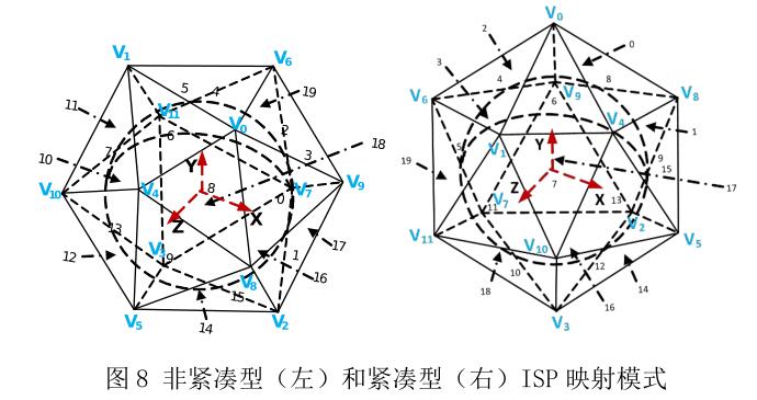 ISP 模型有 20 个三角形的映射面和 12 个顶点。非紧凑型和紧凑型 ISP 的示意图如图 8 所示。