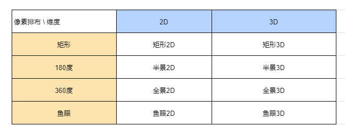 在VR视频中还有180度的视频,像素其实是按照一个半球形的排布所以称为180度视频或者半景视频。