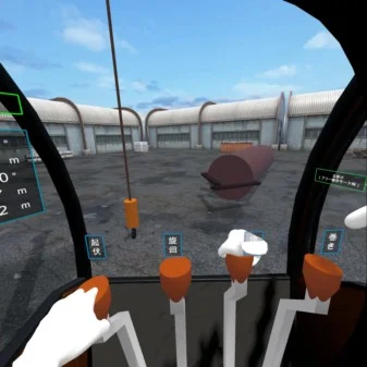 在VR中实现了在工地和施工中使用的“移动式起重机”的操作体验。通过使用 VR进行训练,而无需担心因接触建筑物或障碍物而导致的移动地点或事故。