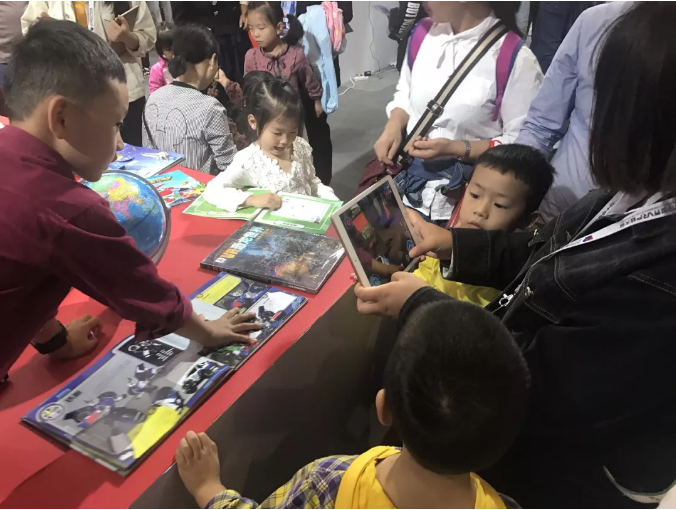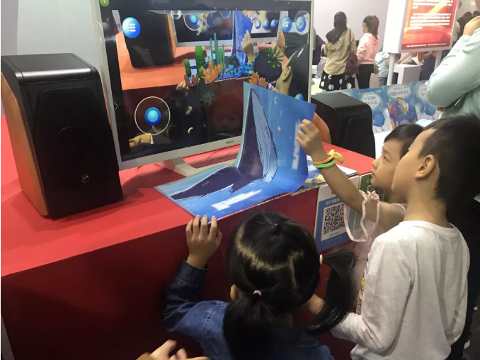 记者在现场看到,首次在VR阅读教育应用展上亮相的AR科普绘本《谁是鱼儿的好爸爸》由二十一世纪出版社集团出版,几天来吸引了许多小观众的目光,他们不时触摸、移动、放大、缩小屏幕上“游动”的鱼,还站在一起与鱼合影并分享朋友圈。