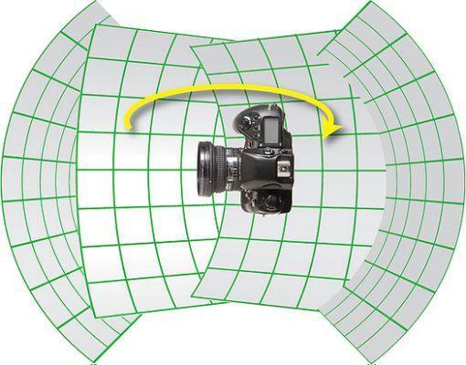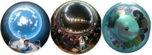 拍摄时,想象把一个水晶球的表面分成多份,每一份就是一个鱼眼镜头,多个鱼眼镜头把现实世界映射成一个球体的表面贴图;