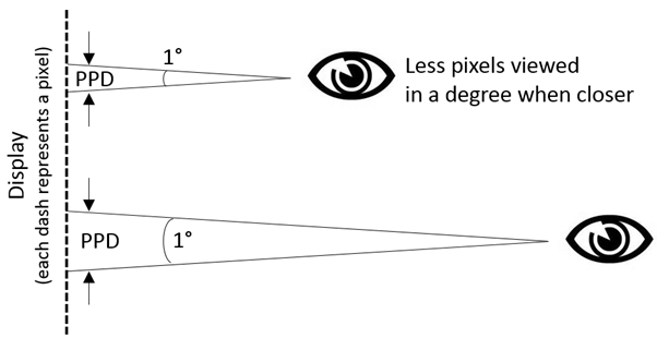 1、首先同样是4K,视频的清晰度和VR视频的清晰度的标准不同,一个是PPI (Pixel Per Inch)没英寸的像素点,一个是PPD ( Pixel Per Degree) 每一度视场角的像素数 。