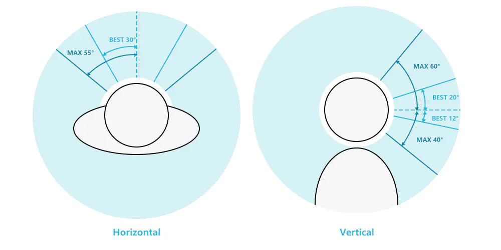 其次是视场角FOV(field of view), 某个眼镜是 100度 FOV,那么就是说,用户在使用时,能同时看到 100度的视角。