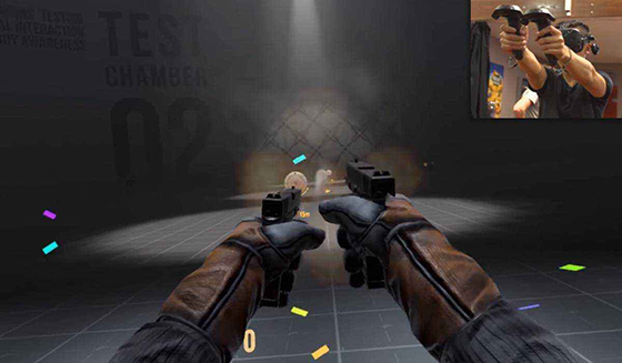 1. 射击类:射击类VR游戏制作起来相对简单一些,因为它主要的动作只有 瞄准+扣动扳机,从体验上讲,也比较能让用户沉浸到紧张的气氛中去,对情节的要求相对低一些。而且,它可以很容易从 平面游戏 移植过来(把VR摄像机绑定到 主角头上,把枪械跟手柄动作绑定)。但是,为了增加游戏乐趣,还需要有针对性的去设计一些新的动作要素。